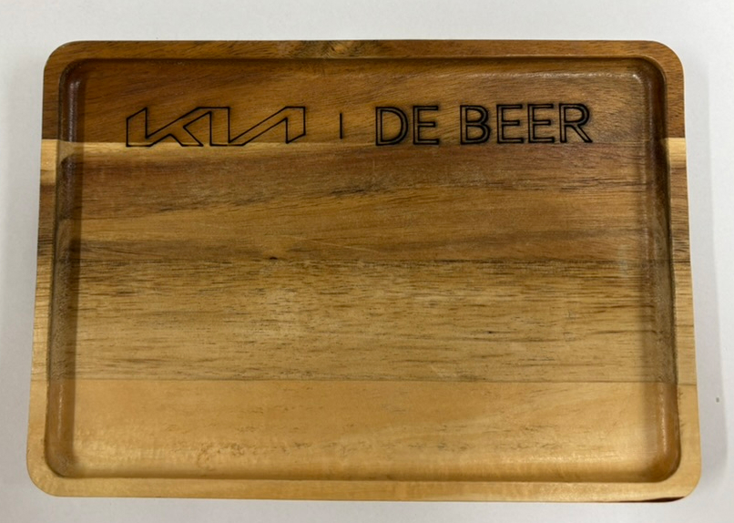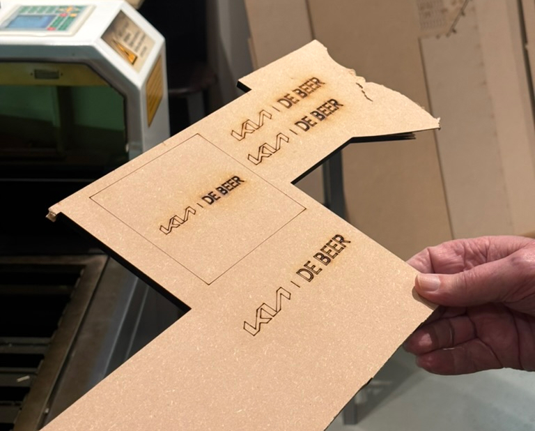Voor het graveren maken we onder andere gebruik van de GVLaser GY1390 lasersnijmachine. Voordat we een definitief product opleveren, voeren we meerdere tests uit om zeker te weten dat het ontwerp perfect tot zijn recht komt. Op een aparte testplank proberen we verschillende instellingen uit, zodat het resultaat qua uitstraling, contrast en scherpte volledig aansluit bij de gewenste look & feel van uw organisatie. Zo bent u verzekerd van een representatief en consistent eindproduct.